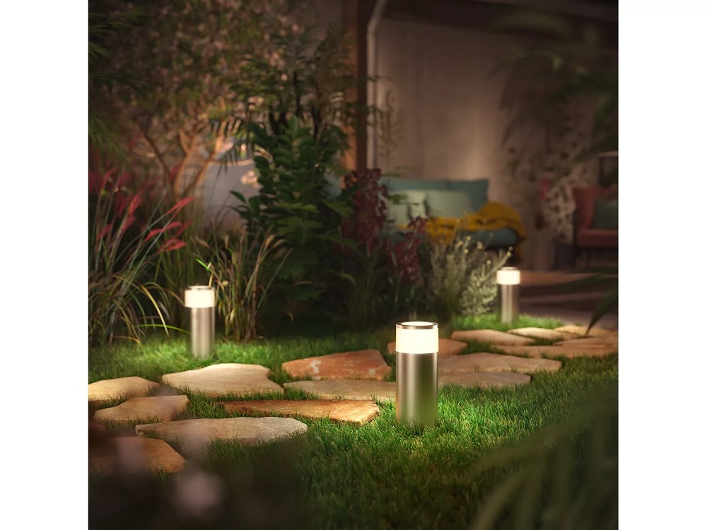 Praktisch: In Verbindung mit der separat bei uns erhältlichen Philips Hue Bridge können Sie mehrere Sockelleuchten oder andere Hue Außenleuchten unabhängig voneinader bedienen. Mit der Hue App können Sie darüber hinaus Ihre Außenbeleuchtung inividuell über Lichtzeitpläne einstellen. Und wenn Sie mal nicht daheim sind, dann ist dies ebenso von unterwegs möglich und keiner merkt, daß Sie nicht zu Hause sind. Eine gute Abschreckung für potentielle Diebe.