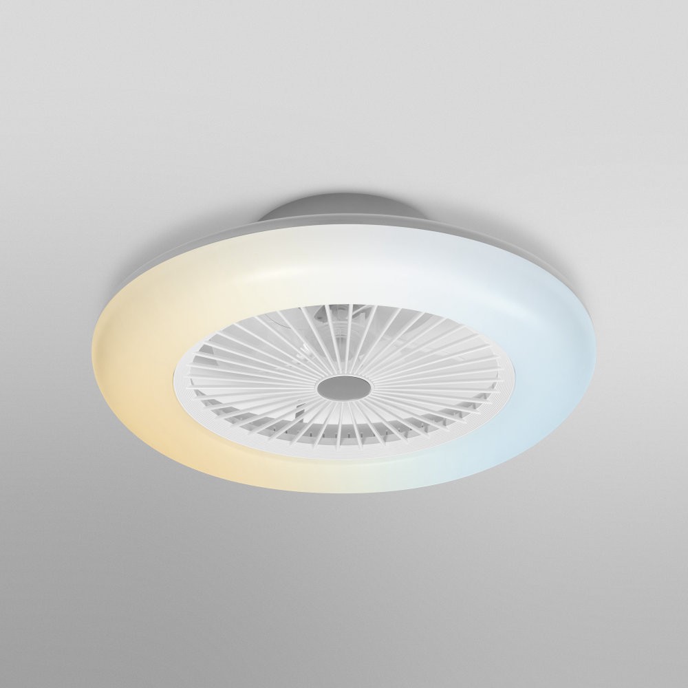 Mit der mitgelieferten Fernbedienung per App oder Sprachbefehl lassen sich alle Funktionen des Ventilators steuern und aktivieren. Unter anderem können Helligkeit und Farbtemperatur eingestellt werden. Die Integration erfolgt mit der SMART+ WiFi-Technologie über WLAN.