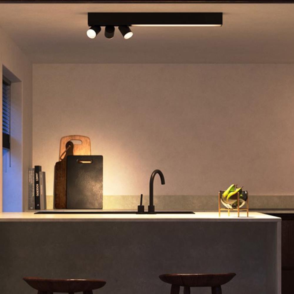 Der Philips Hue LED-Spot Centris Cross, dreiflammig ist eine vielseitige Ergänzung für Ihr Zuhause. Dieser LED-Spot ist mit drei GU10-Birnen versehen, die in alle Richtungen eingestellt werden können. Darüber hinaus verfügt die Deckenleuchte über ein LED-Panel, das für eine gleichmäßige Allgemeinbeleuchtung sorgt. Die Spots strahlen akzentuierte Lichtpunkte aus, und das Panel verströmt ein diffuses Licht. Die Kombination ein modernes Licht-Ambiente im Wohnraum. Der Spot besteht aus drei schwenkbaren Leuchten und einem Lichtbalken mit festen LEDs. Der Rest der Leuchte ist aus Aluminium gefertigt, so dass sie sich problemlos in jeden modernen Wohnraum integrieren lässt. Dank der Bluetooth-Technologie können Sie die Leuchte bequem ohne Zubehör über die kostenlose Bluetooth-App steuern. Um jedoch alle spannenden Funktionen nutzen zu können, empfehlen wir, Centris mit der Philips Hue Bridge zu koppeln und in Ihr Smart Home System zu integrieren.