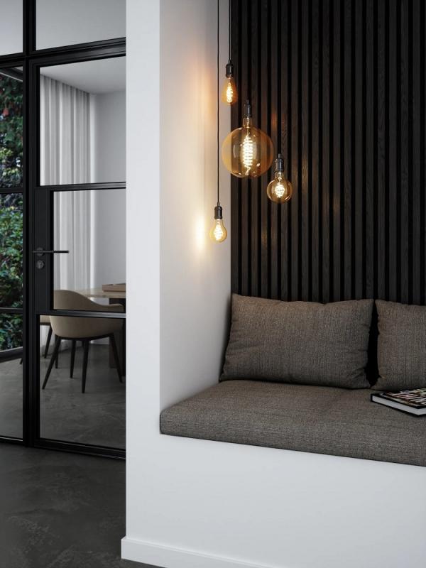 Dekoratives Smart-E27-Edison-Leuchtmittel in Bernsteinfarbe und mit einer hörnchenförmigen Lichtquelle. Das warmweiße Licht schafft eine gemütliche Atmosphäre. Mit Ihrem Smartphone oder Tablet können Sie die Helligkeit verringern oder erhöhen, oder Sie fügen eine Smart-Fernbedienung hinzu, wenn Sie Ihre Beleuchtung ohne Smartphone steuern möchten.