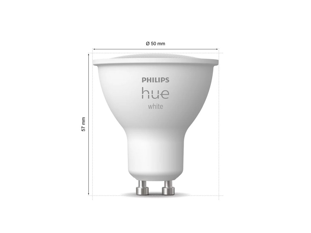 Das Philips Hue LED-Leuchtmittel ist für Lampen mit einer GU10-Fassung geeignet, die künftig auf smarte Lichtsteuerung umgestellt werden sollen. Das Leuchtmittel ist kompatibel mit der Hue Technologie Licht lasst sich heller oder dunkler einstellen.