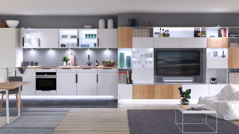 Panel Flad in Weiß matt wird unter dem Oberschrank montiert und spendet flächiges Licht. Es hat eine Kabellänge von 2m. Clever Connect bietet individuelle Möbelbeleuchtung in einem System. Leuchten, Driver und Zubehör sind frei zusammenstellbar und einfach zu montieren. Die Tunable White-Funktion verbindet „Arbeiten“ und Wohlfühlen“ als Lichtstimmung. Dank unbegrenzter Leitungslänge, kann das System ständig erweitert werden.