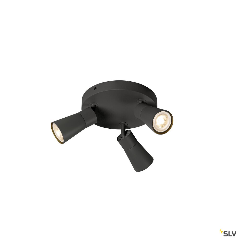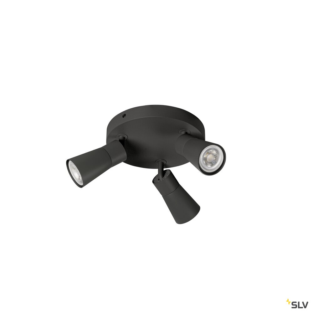 SLV 1008336 PURI 2.0 Cone, Wand- und Deckenaufbauleuchte, rund, 3 x max. 6 W GU10, schwarz