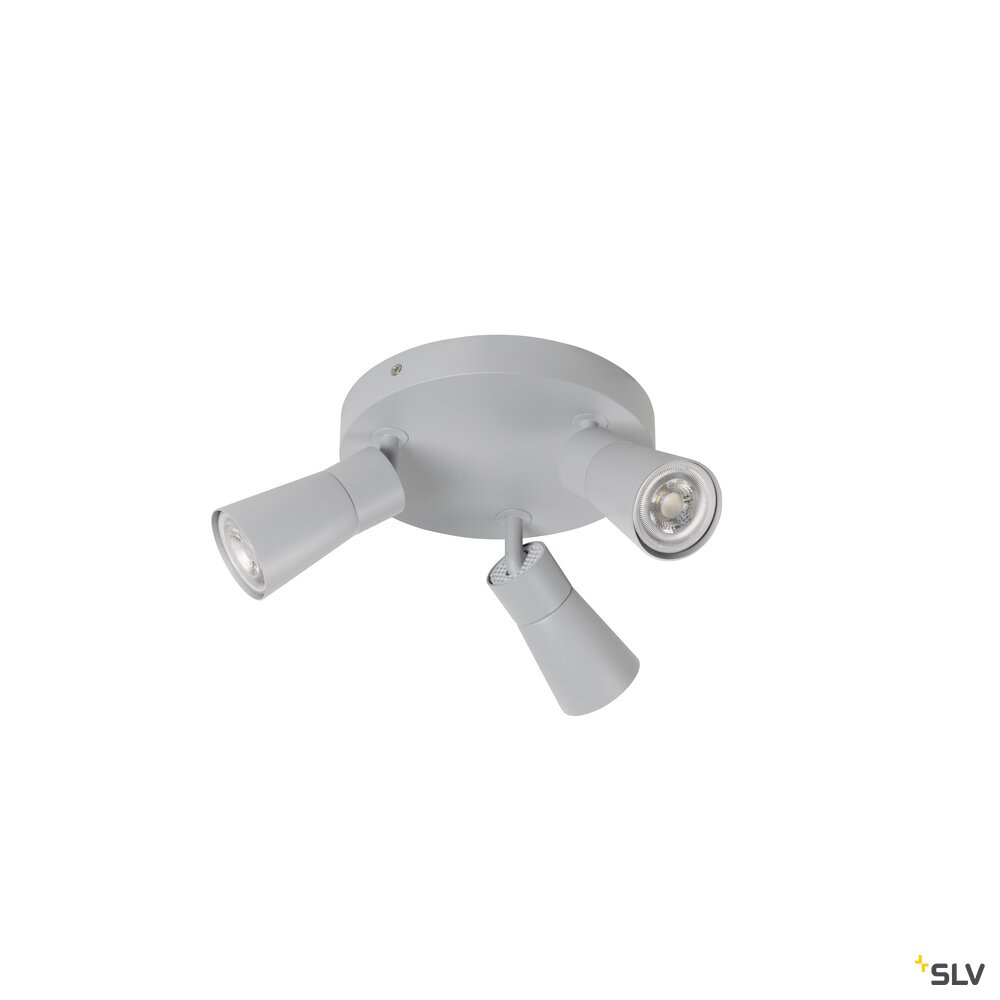 SLV 1008339 PURI 2.0 Cone, Wand- und Deckenaufbauleuchte, rund, 3 x max. 6 W GU10, grau