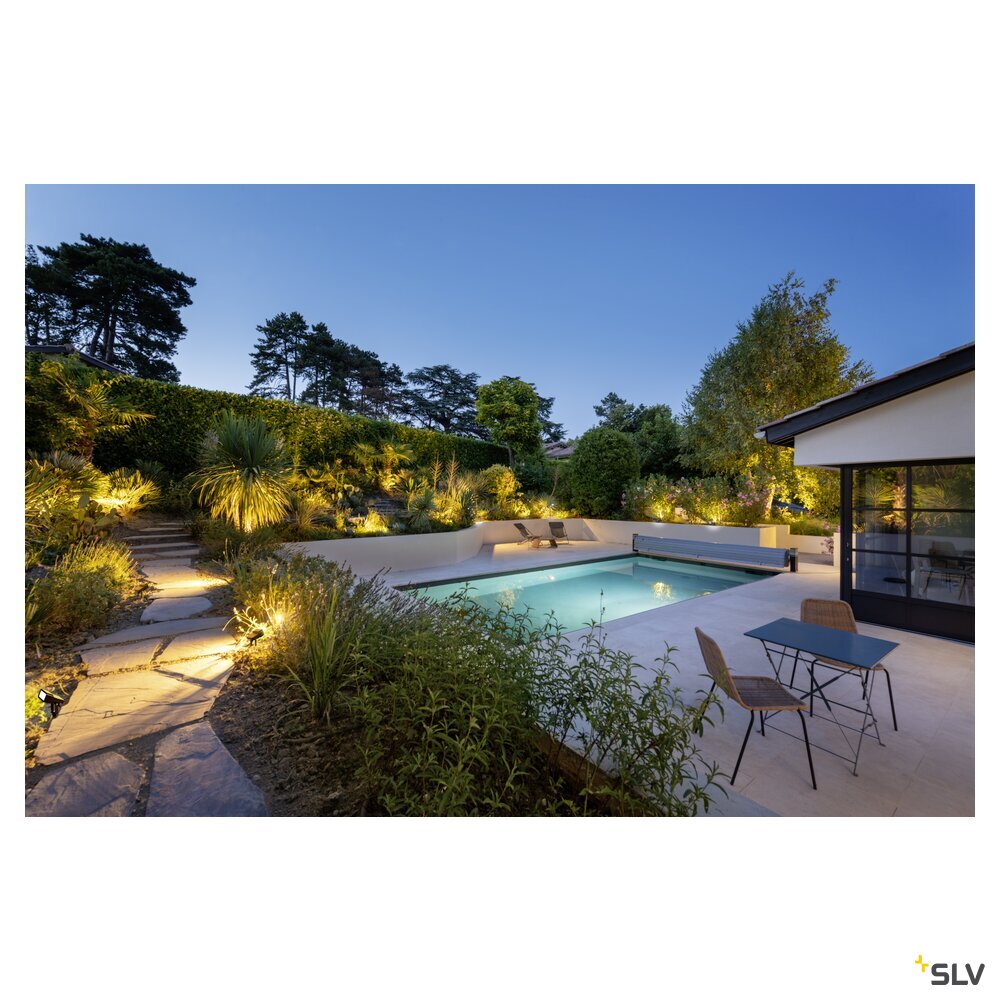 Die SYNA WIDE Erdspießleuchten mit IP65-Schutz sind mit einer 6 W LED ausgestattet und in den Lichtfarben 2200 K und 3000 K erhältlich. Sie bieten einen breiten 115° Abstrahlwinkel, ideal zur Beleuchtung von Büschen und Fassaden. Mit einer Lebensdauer von 30.000 Stunden und einem robusten Aluminiumgehäuse, das über einen Erdspieß einfach zu befestigen ist, sind sie perfekt für den Außenbereich geeignet. Der Anschluss erfolgt über ein 1,5 m Kabel mit Schuko-Stecker (IP44).