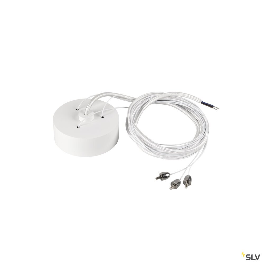 Mit dem farbig passenden Abhängeset können die DECONA Wand- und Deckenaufbauleuchten abgependelt werden.
