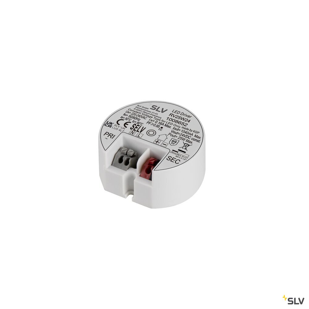 Rundes Konstant Spannungsnetzteil für den 24VDC mit 25 W Betrieb. Geeignet für den Doseneinbau.