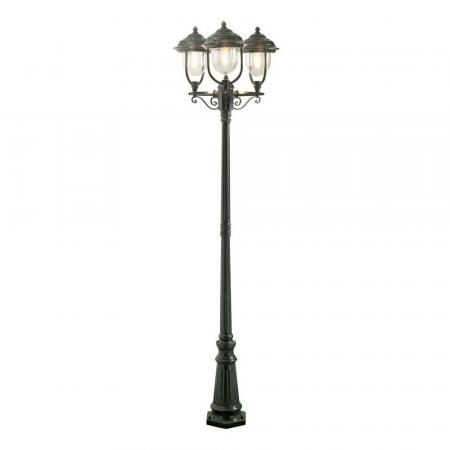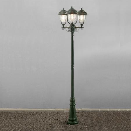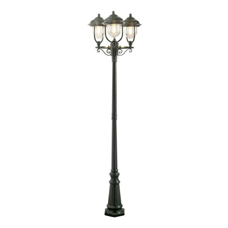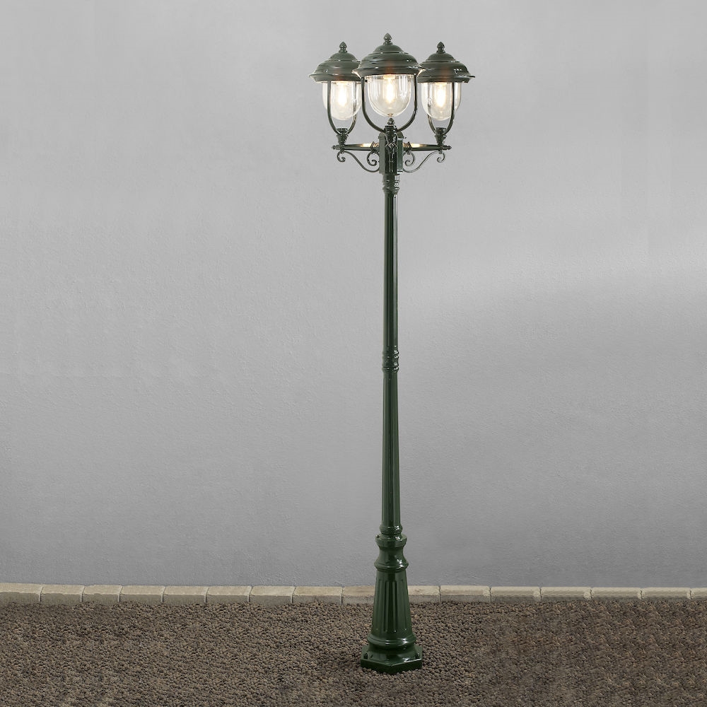 Diese prachtvolle Kandelaber aus grün lackiertem Aluminium ist optimal für parkähnliche Gärten und Parkanlagen geeignet. Die Mastleuchte besteht aus drei Lampenköpfen mit nostalgisch anmutenden Schirmen. Die Verglasung erlaubt einen direkten Blick auf die Leuchtmittel. Wir empfehlen Ihnen daher unsere sparsamen LED-Filament Leuchtmittel einzusetzen. Der klassische Stil der Mastleuchte lässt eine vielfältige Nutzung zu. Ob in der Hoeinfahrt oder am Weg des Grundstückes, diese Kandelaber macht in vielen Umgebungen eine sehr gute Figur.